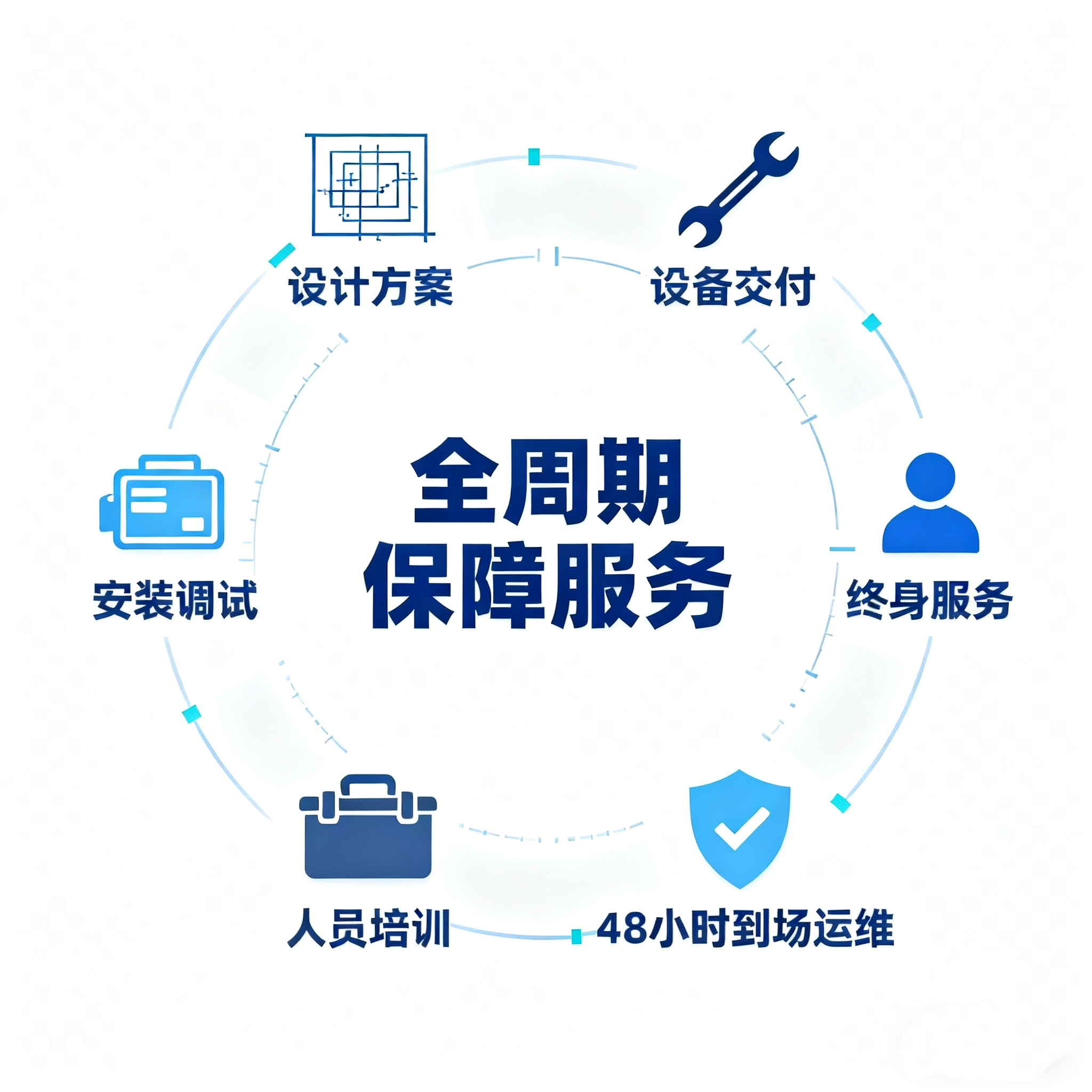 從設(shè)計(jì)方案到設(shè)備交付 全周期保障提供安裝調(diào)試、人員培訓(xùn)、48 小時(shí)到場運(yùn)維等終身服務(wù)。